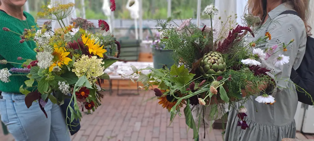 I kurset tar vi utgangspunkt i våre egenproduserte, økologiske blomster og ville vekster som utgangspunkt. På kurset vil du lære å binde blomster etter spiralteknikken, utforske fargekombinasjoner og fargelære og få gode tips og triks til hvordan du kan lage en bukett fra hagens mangfold.