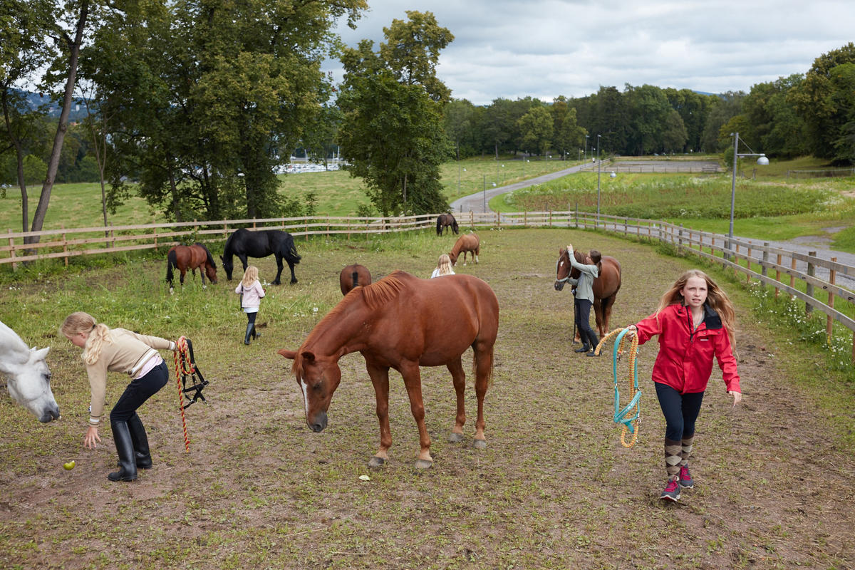 From Bygdøy: Take the last road to the right before Bygdøylokket, Wedel's road. Then take the first road to the right at the large riding arena. Then you will see the stables about 200 meters further up the road. Red building with HM King Harald's emblem on the building.