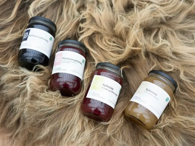 Depending on the season, we sell jam. Our organic jams are made from berries and fruits from the farm in collaboration with Lisa Syltetøy.