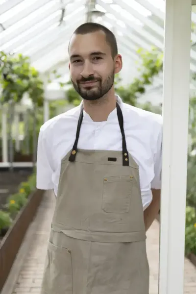 Kursholder denne kvelden er Andreas Storeng. Andreas er kokk her ved Gartneriet Spiseri, i tillegg til å videreutdanne seg i gastronomiske studier ved Fagskulen Vestland på deltid. Andreas står for konservering av grønnsaker og bær produsert på gården, og baserer menyen utfra de råvarene som er i sesong.